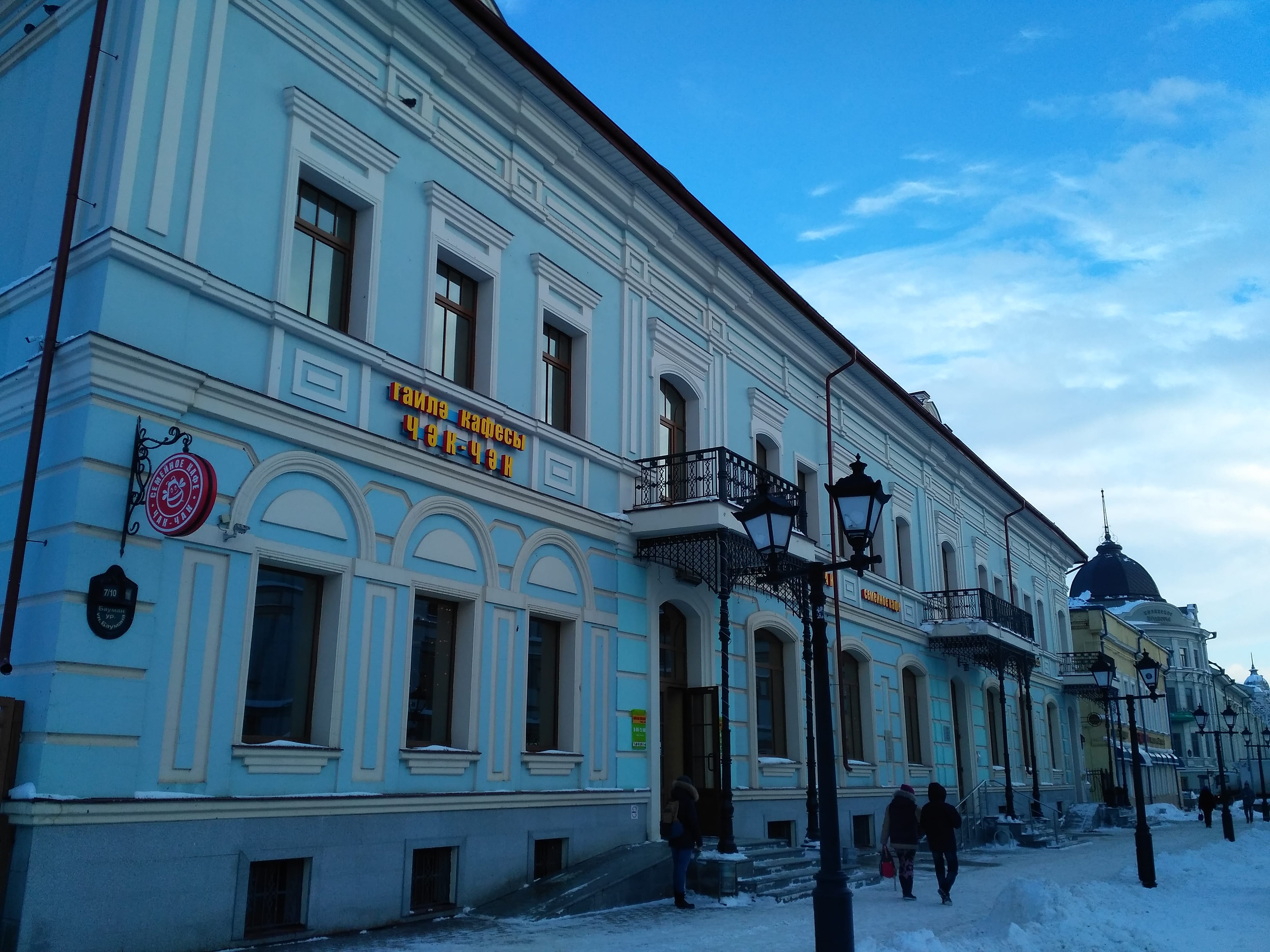 Главная , ведущая от Кремля до Площади Габдуллы Тукая. Зимой нет ни художников, ни музыкантов, которых обещают все туристические сайты. Но хватает зазывал, кричащих вывесок и музыки из граммофонов. Улица потенциально милая, но хотелось бы убрать эти признаки 90-х.